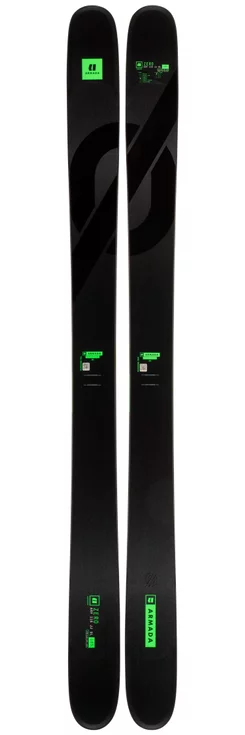 The ARV 116 JJ UL is a very high-end freestyle backcountry ski from Armada. This ski, derived from the greatly missed JP Auclair’s iconic model, has XXL dimensions, offers high performance and a lighter weight. Twin-tip, double rocker, 116 mm under foot: it floats with incredible ease in powder and lifts easily to get back on top after jumping a cliff. The double rocker and lighter weight improve nimbleness, to be able to turn on a dime despite the impressive dimensions. The classic camber provides grip on hard pack and allows to benefit from the power of the Caruba wood core. A very exclusive model, in terms of skills and snow conditions.