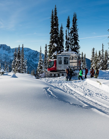 At Mustang Powder we operate with Pisten Bully (PB) snowcats. With a fleet of cats at the ready, we are able to accommodate different groups and programs at the same time. There are also cats ready as backups and for road building, meaning that even mechanical issues won’t slow things down.