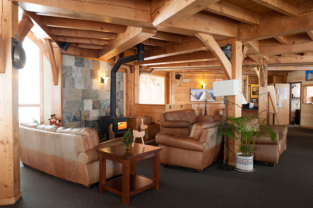 The magnificent timber frame construction of the Mustang Lodge is a work of art. The high elevation of the lodge (1740m / 5700 ft) means that the views from the lounge, dining room and bedrooms are spectacular. In the morning we drop-off for our first run 5 to 10 minutes from the lodge. All guests have private bathrooms, with some single bedrooms also available.