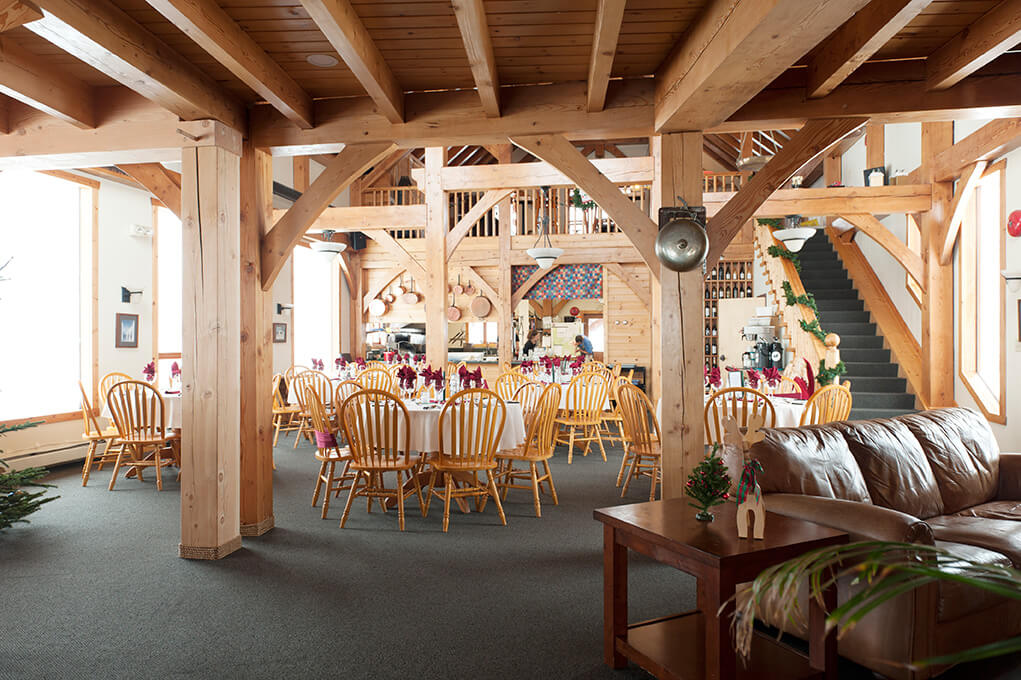 Dinner is a four course affair. Soup, salad, main, and a decadent dessert. Our chefs, Tommy, Jason, Pat, and Rick, source fresh local ingredients and locally raised meats including duck, beef, chicken, elk, bison and lamb. In addition, we often have wild BC salmon, or if you’re lucky, black cod. Please see Two Rivers Specialty Meats to learn more about where we source our meats.